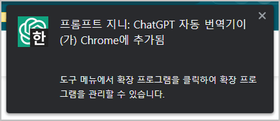 프롬프트 지니 chatgpt 자동 번역기를 크롬에 추가해 줍니다.