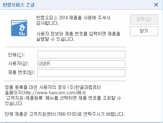 한글2014 제품 번호 입력 창 뜨지 않게 하는법