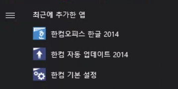 윈도우 시작 버튼을 누르면 [한컴오피스 한글 2014]가 정상적으로 설치되어 있는 것을 확인할 수 있습니다.