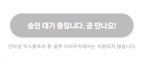 "승인 대기 중입니다. 곧 만나요!" 승인 신청을 하시면 하루도 채 되지 않아 금방 승인이 나게 됩니다.