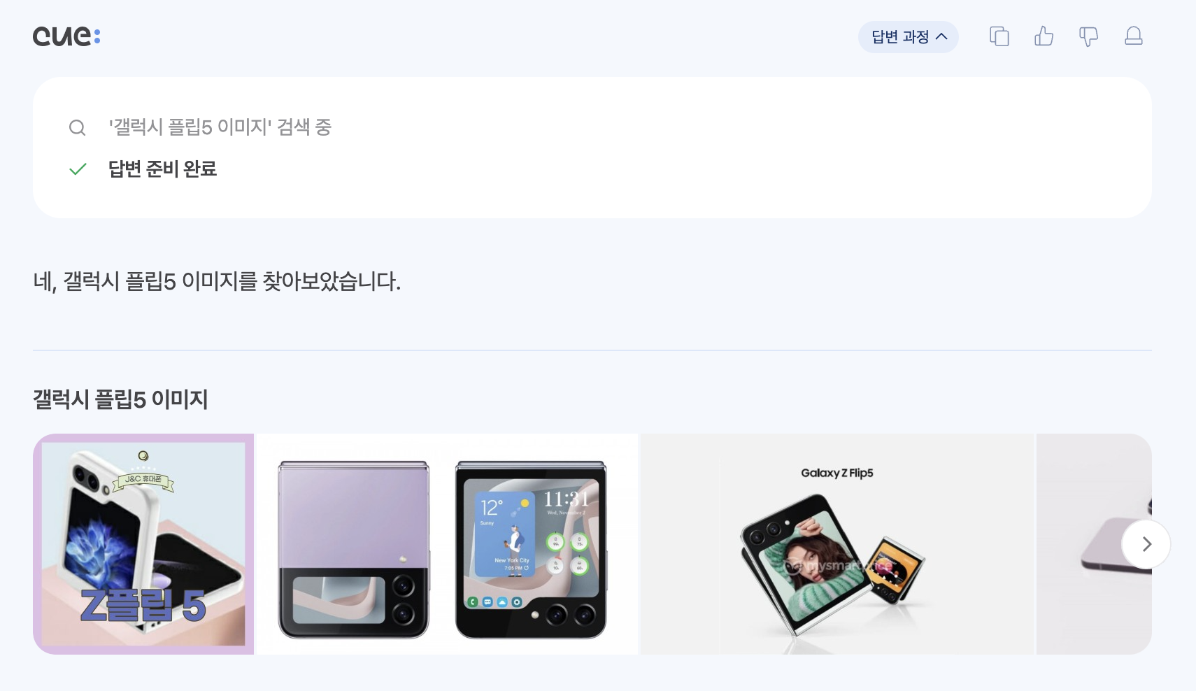 네이버 검색 기반의 cue 서비스이기 때문에 이미지들도 추천 받을 수 있습니다.
