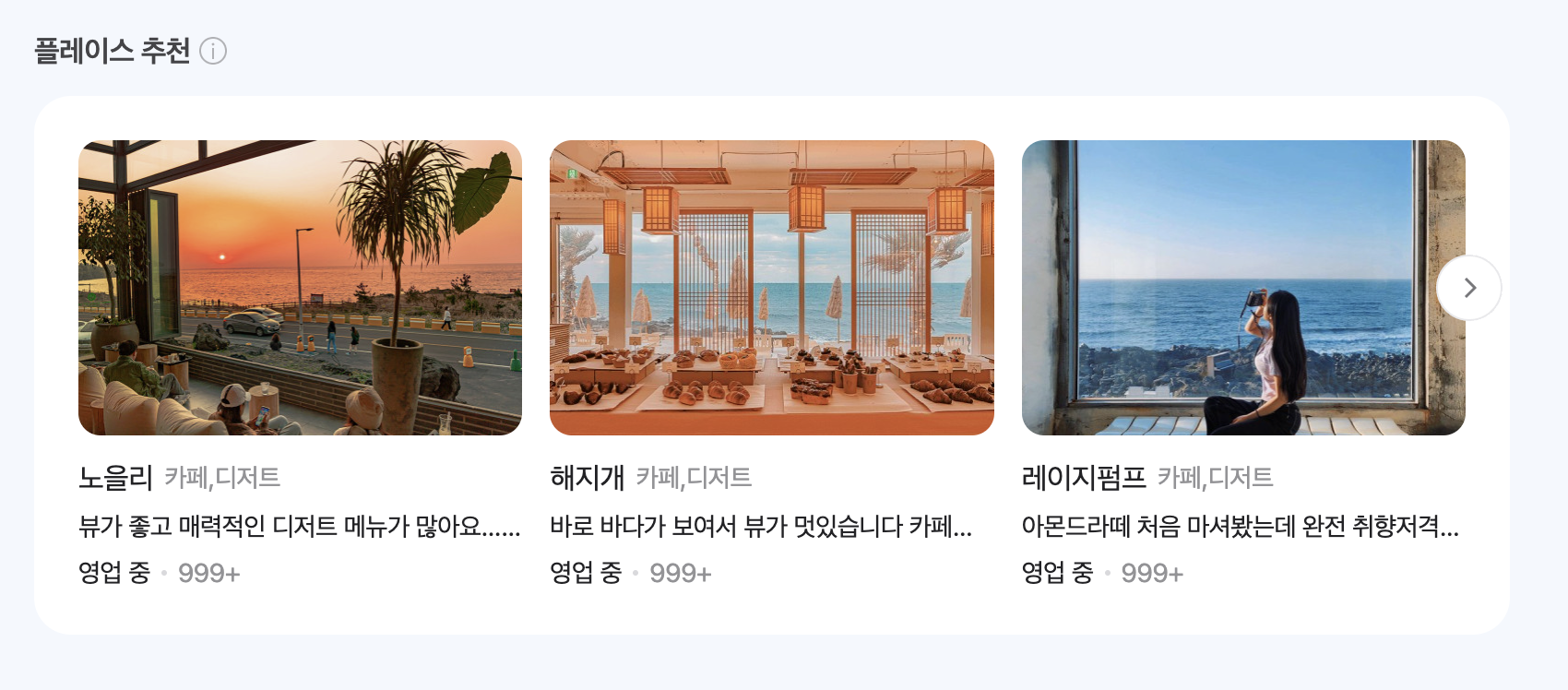 네이버 플레이스 기능을 통해서 다양한 장소 추천을 해줄 수 있습니다. 그 장소에 쌓여있는 리뷰, 후기 데이터들도 많기 때문에 그것 또한 같이 확인할 수 있습니다.