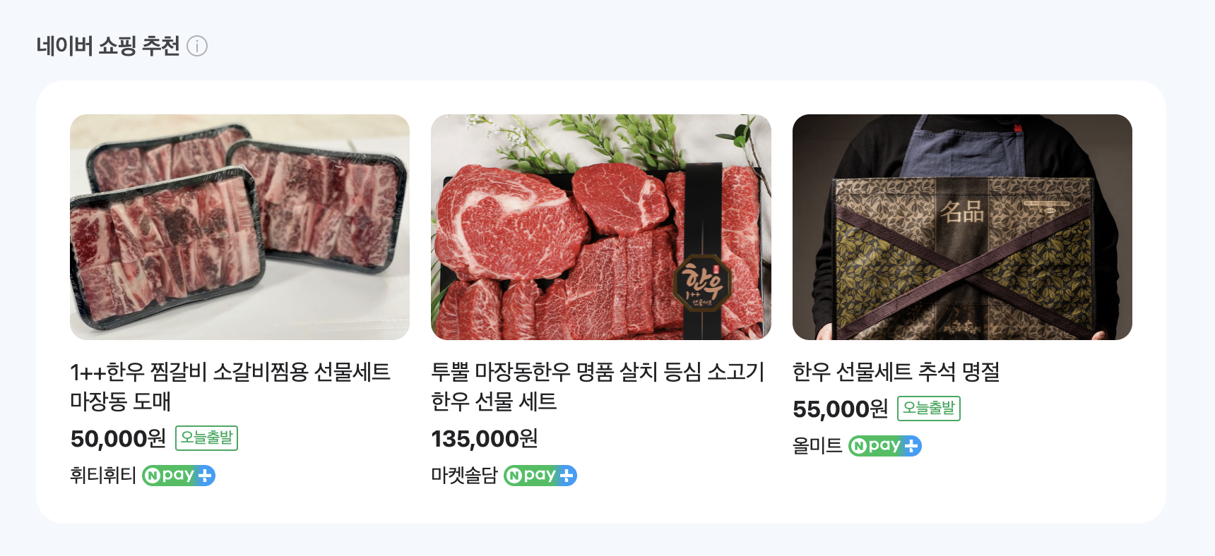 네이버는 스마트스토어라는 오픈 마켓을 가지고 있습니다. 많은 사업자들이 입점해 있기 때문에 이러한 데이터들을 통해서 상품을 추천해 주고 있습니다.