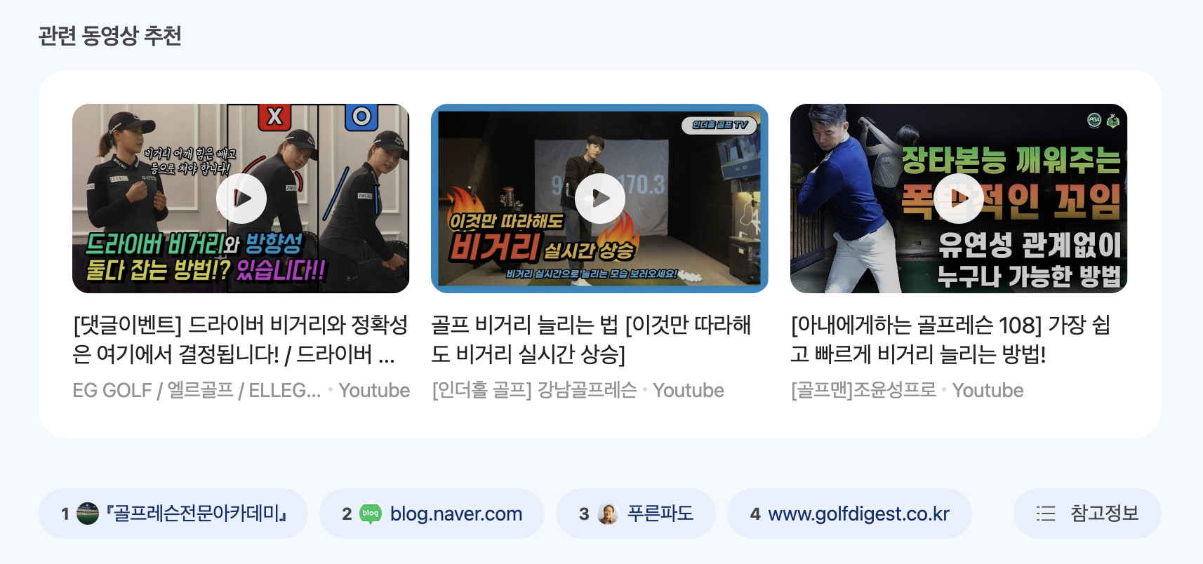 관련된 영상도 추천받을 수 있는데 네이버 동영상 서비스는 사실상 서비스 되고 있지 않기 때문에 유튜브 영상들을 추천해주고 있습니다. 관련된 블로그들도 잘 추천해 주기 때문에 참고하기가 좋습니다.