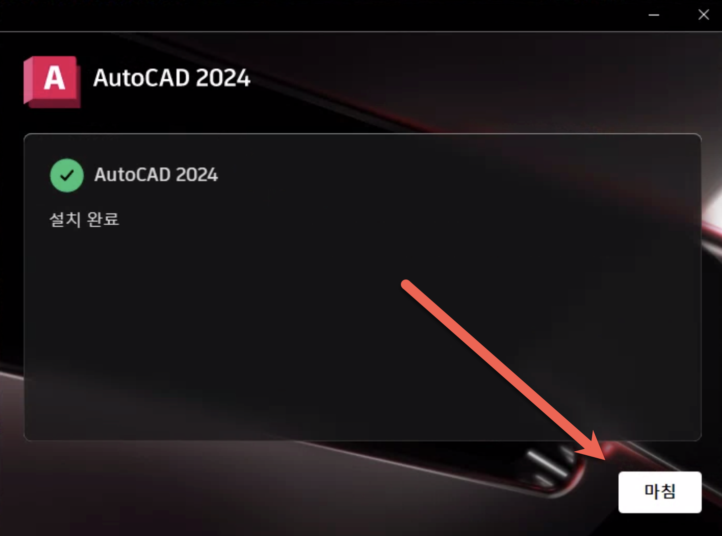이제 AutoCAD(오토캐드) 사용을 위한 준비가 끝이 났습니다. 바탕화면이나 시작 메뉴에서 AutoCAD 2024를 클릭하시면 실행할 수 있습니다.