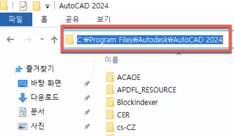 acad.exe 파일이 있는데 이 파일을 다운로드 받은 파일로 덮어씌워줍니다.