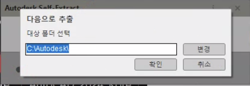파일 추출할 위치를 선택해줍니다. C 드라이브에 Autodesk 폴더에 추출해 주시면 됩니다.