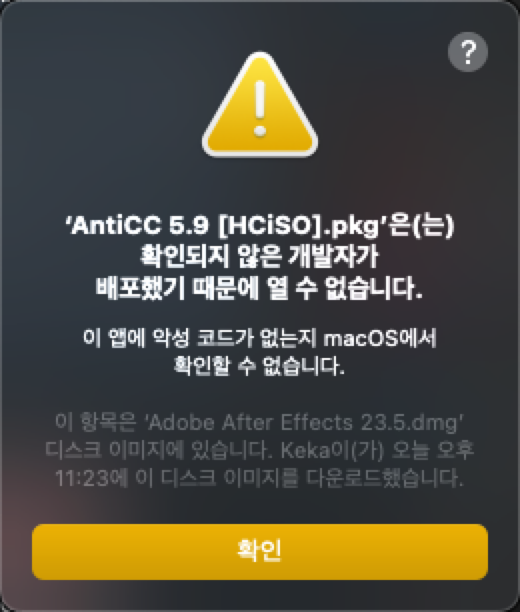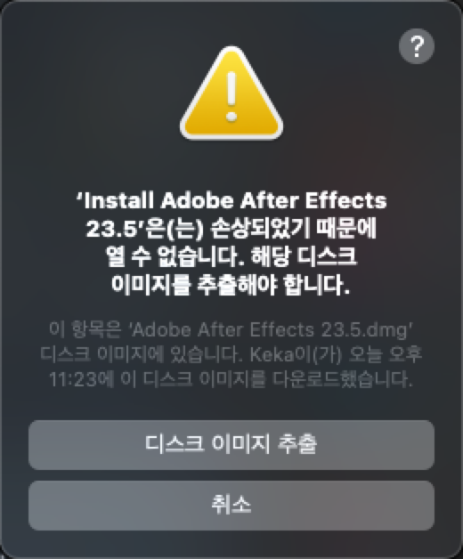 Adobe After Effects 23.5 dmg 파일을 더블클릭해서 실행해줍니다.