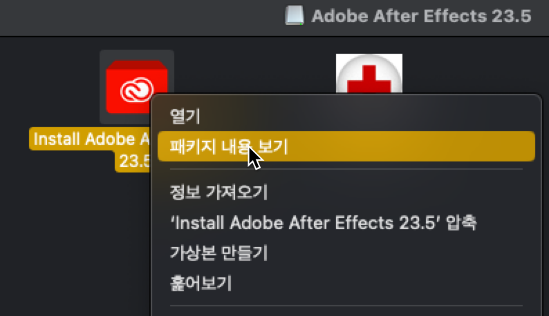 install Adobe After Effects를 더블클릭해서 에프터 이펙트 설치를 진행해줍니다.