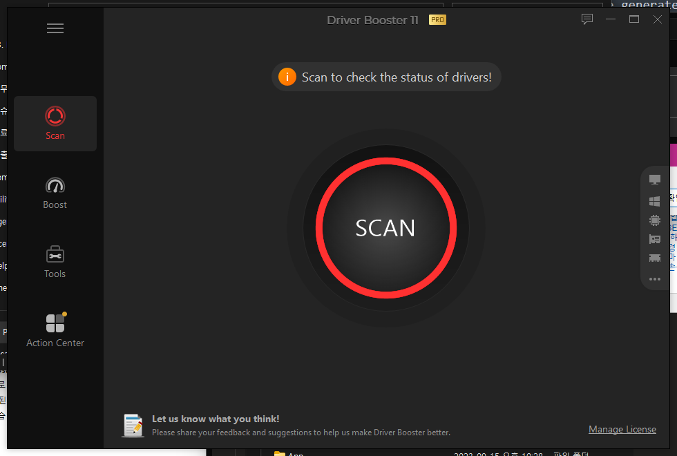 내 PC의 드라이브를 관리할 수 있는 프로그램이 실행되었습니다. Scan을 클릭해주시면 드라이버 업데이트 및 최적화 사용이 가능합니다.