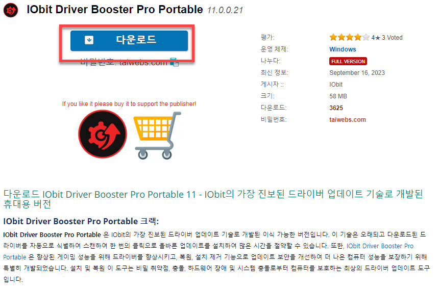 다운로드를 클릭해서 Iobit Driver Booster Pro 설치 파일을 다운로드 해줍니다.