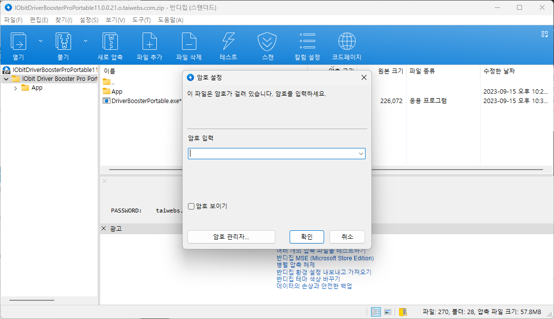 압축 해제 패스워드는 taiweb.com을 입력해 주시면 압축 풀기가 가능합니다.