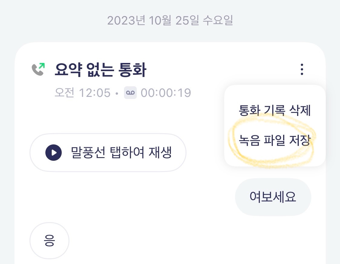 통화가 끝나면 자동으로 녹음이 저장됩니다. SK텔레콤의 에이닷 통화녹음 기능이 나오기 전에는 이런저런 얘기가 많았는데, 여러 소문 중 하나대로 수신과 발신 둘다 통화 녹음이 가능합니다.