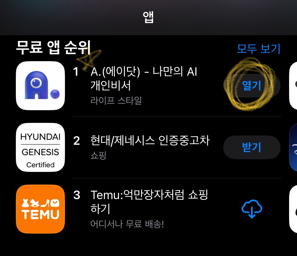 최근 가장 뜨거운 이슈인 아이폰 통화녹음 기능을 통해서 앱스토어 1위를 차지했습니다. 나만의 AI 개인비서 어플로 등장했지만 미적지근한 반응이였지만 이제는 아이폰 통화녹음으로 한동안 1위 자리를 지킬 것으로 보입니다.