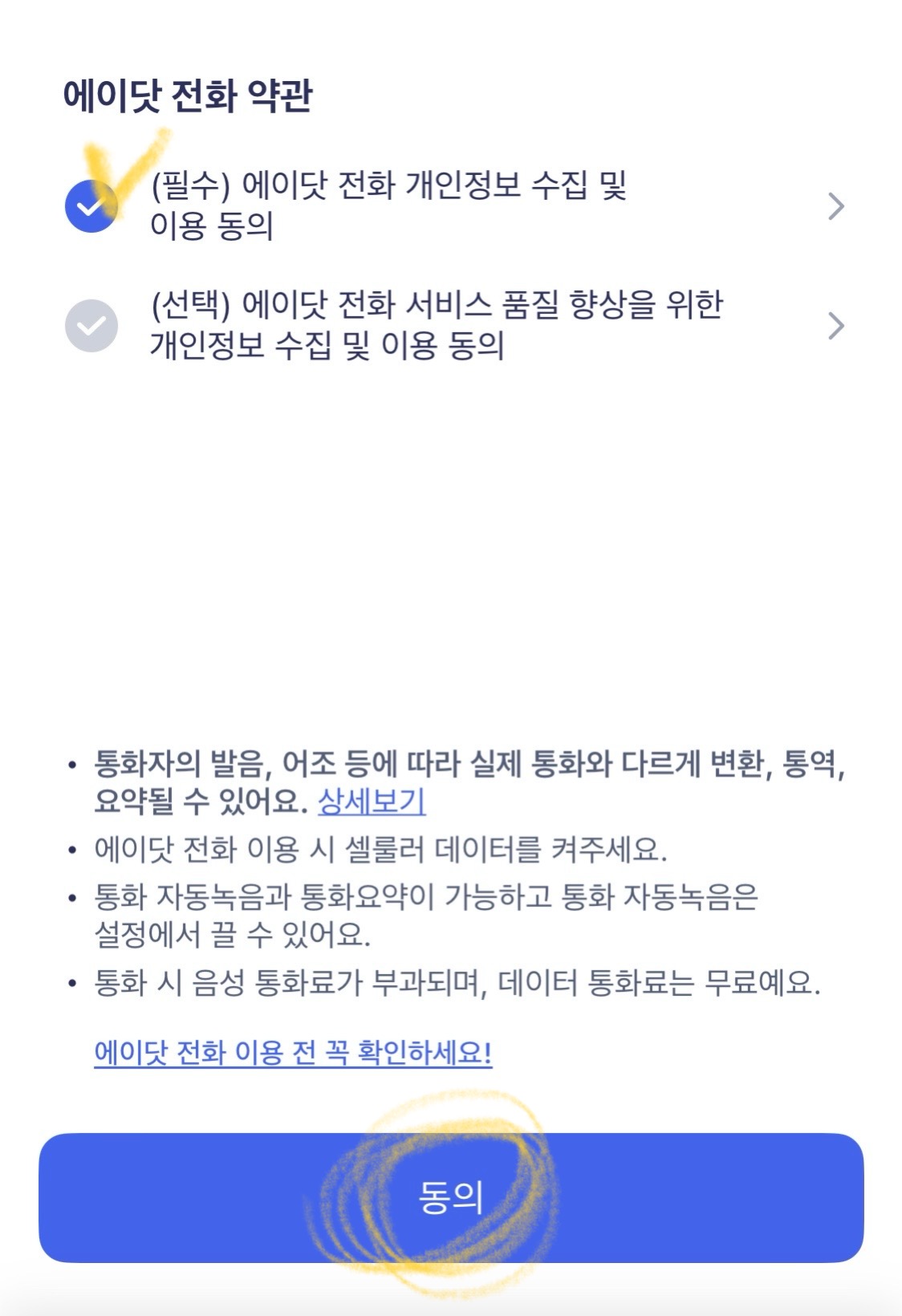 처음에는 전화 개인정보 수집에 대한 약관 동의를 해야합니다.