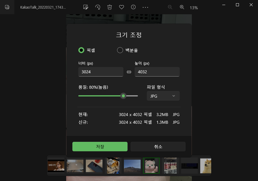 그러면 이제 사진 용량이 줄어든 상태를 확인하실 수 있습니다.