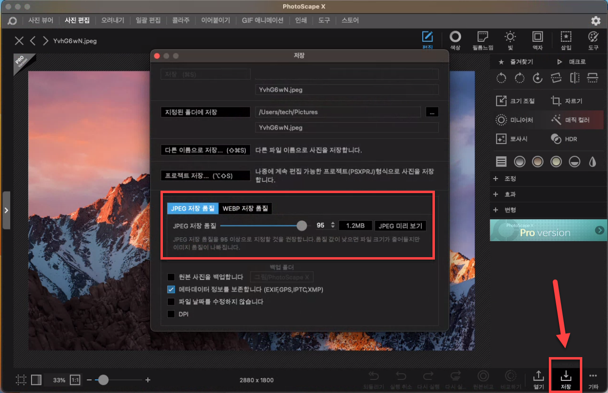 3. 포토스케이프(Photoscape X) 앱에서 사진 용량 줄이기