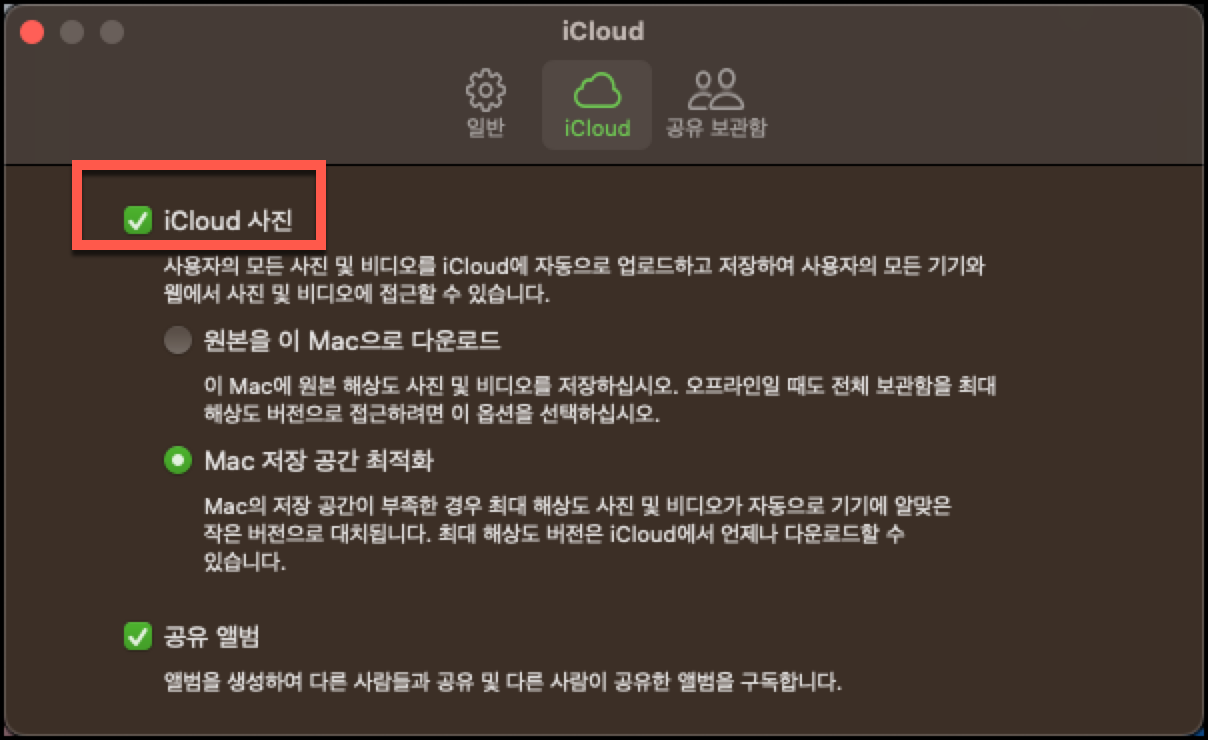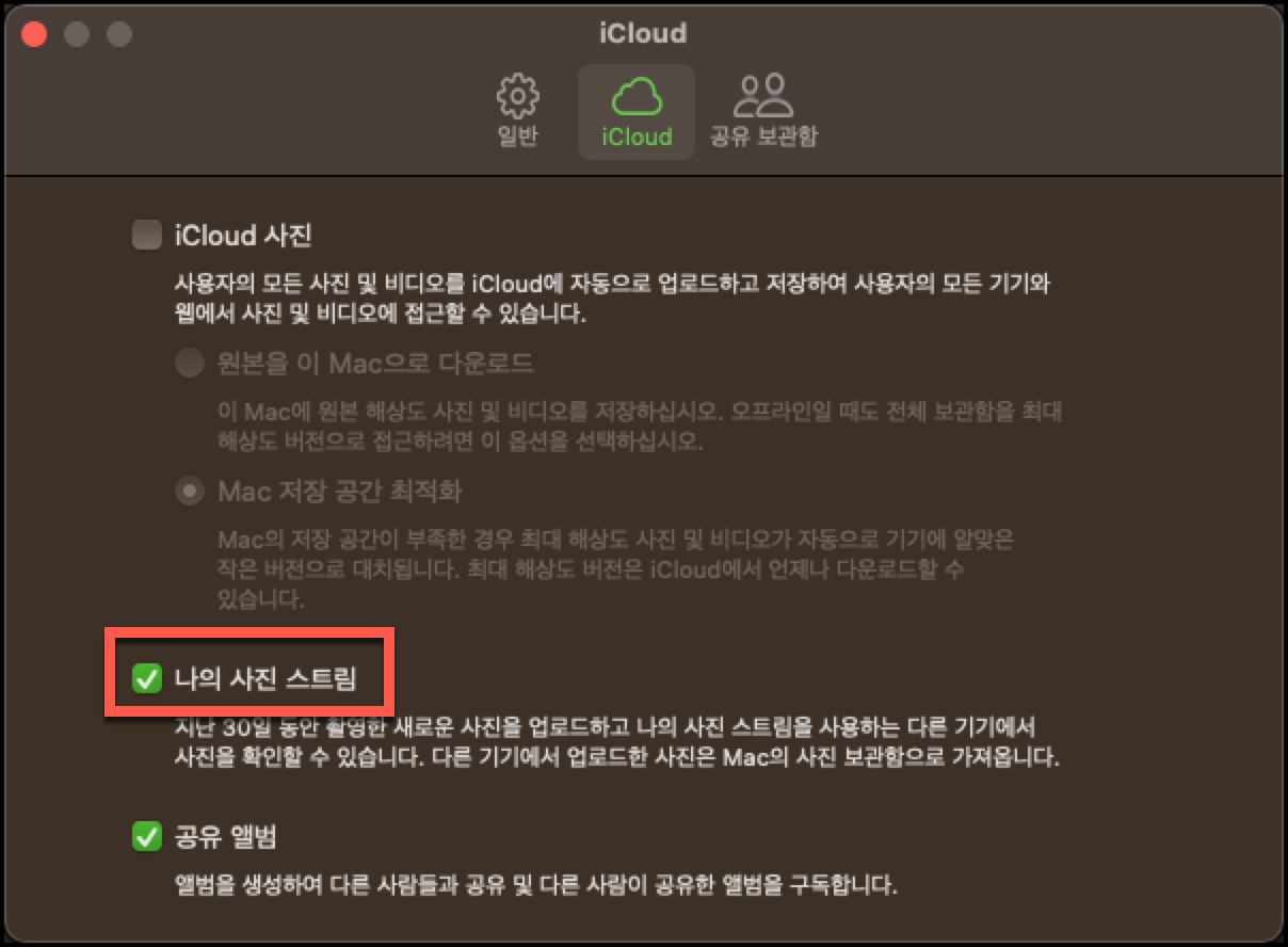 맥북 나의 사진 스트림 버튼 활성화 방법