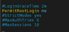 PermitRootLogin 부분을 yes -> no 수정해줍니다.