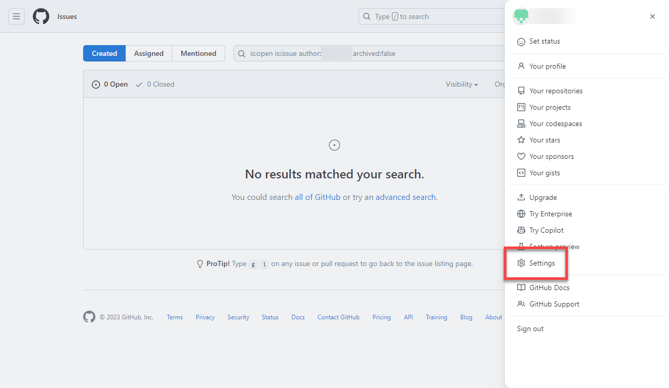 Github에 로그인을 하신 후 프로필을 클릭해 줍니다. 아래에 Settings를 선택합니다.