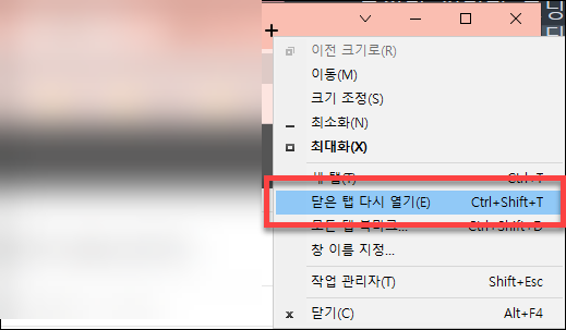 Ctrl+Shift+T 단축키를 이용해서도 닫은 탭을 다시 열 수 있습니다.