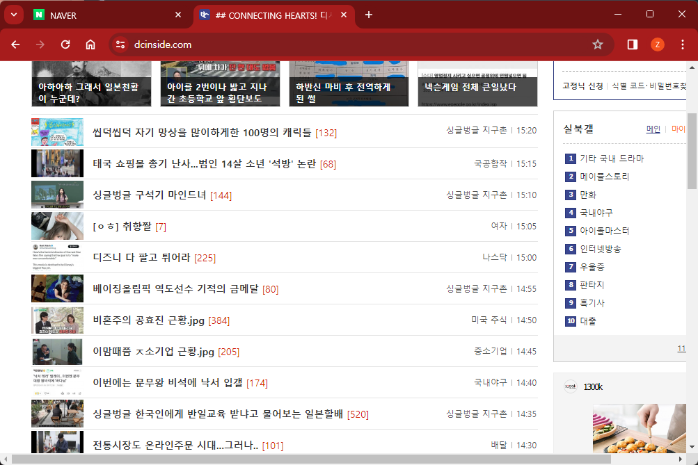 인터넷 커뮤니티에서 재미있는 게시물들을 보고 있다가 실수로 닫는 일이 있습니다.