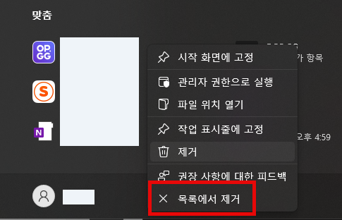윈도우11 즐겨찾기, 최근 항목 목록 삭제 방법