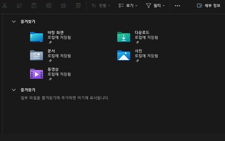 폴더 홈에 있는 즐겨찾기를 가보셔도 더 이상 사용한 파일 목록이 표시되지 않게 됩니다.