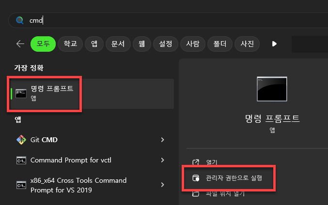 1. CMD(명령 프롬프트) 또는 PowerShell 열기: