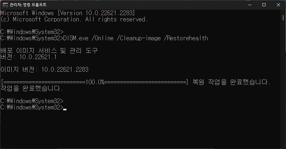 2. DISM 명령어 실행: