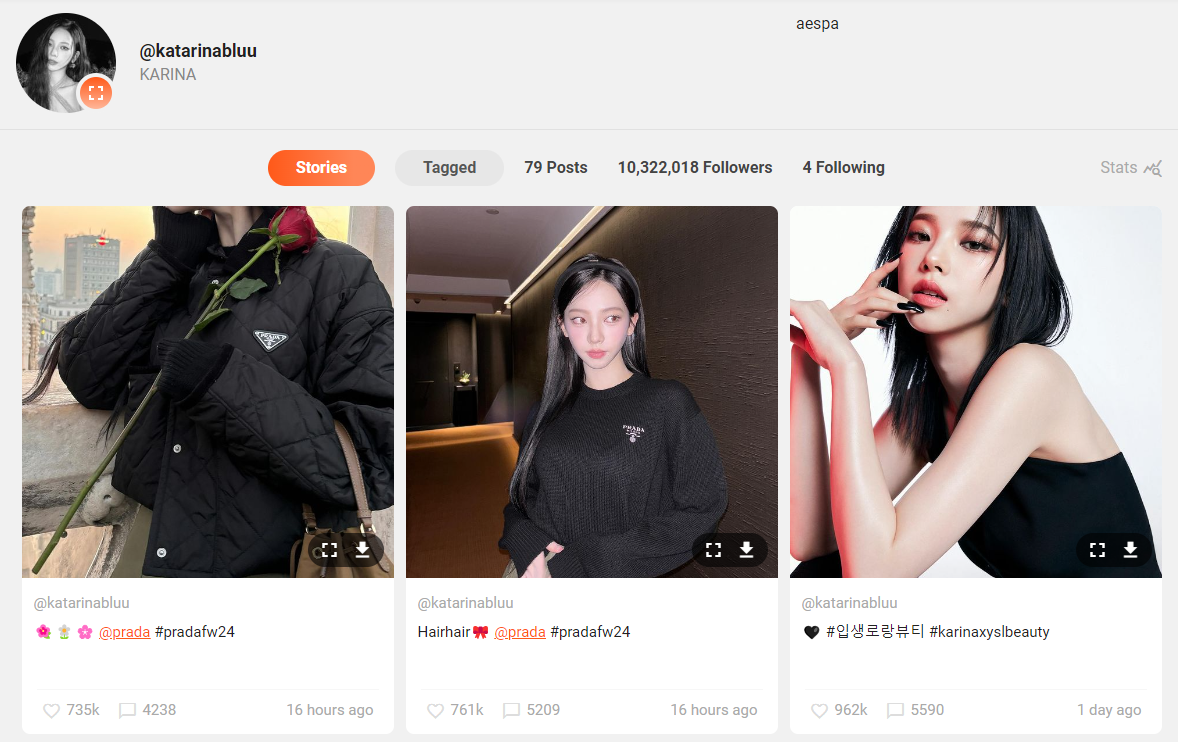 본격적으로 카리나 인스타를 염탐해보도록 하겠습니다.