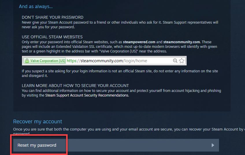 'My Steam Account was stolen and I need help recovering it' 을 클릭해줍니다.