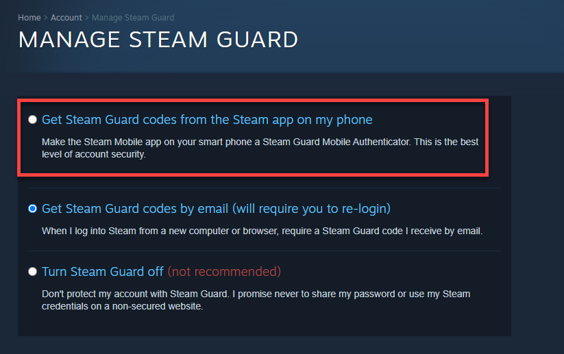 Get Steam Guard codes from the Steam app on my phone