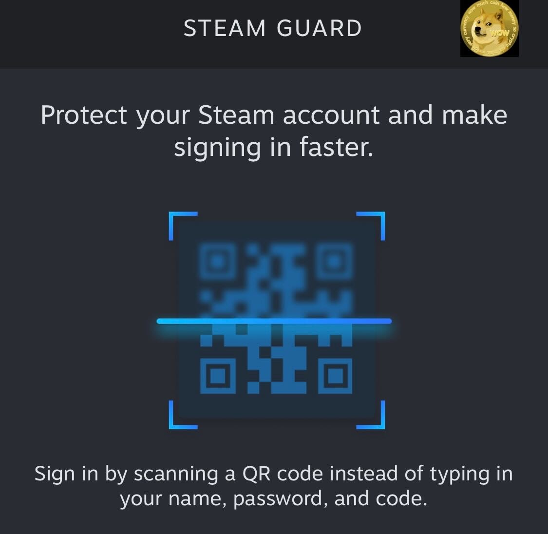 이제 스팀 어플에서 방패 표시를 클릭하면 인증 코드 또는 QR 코드 스캔으로 계정 로그인이 가능해졌습니다.