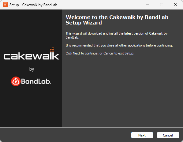 Cakewalk installer를 다운로드 해줍니다. 케이크워크를 설치할 설치 마법사입니다.