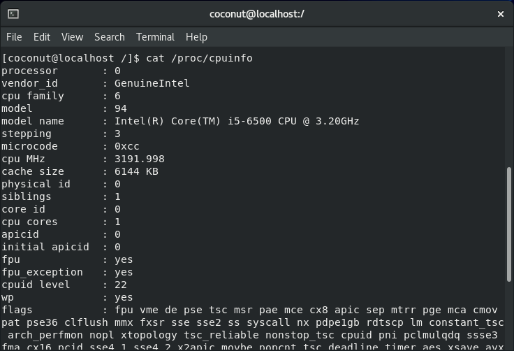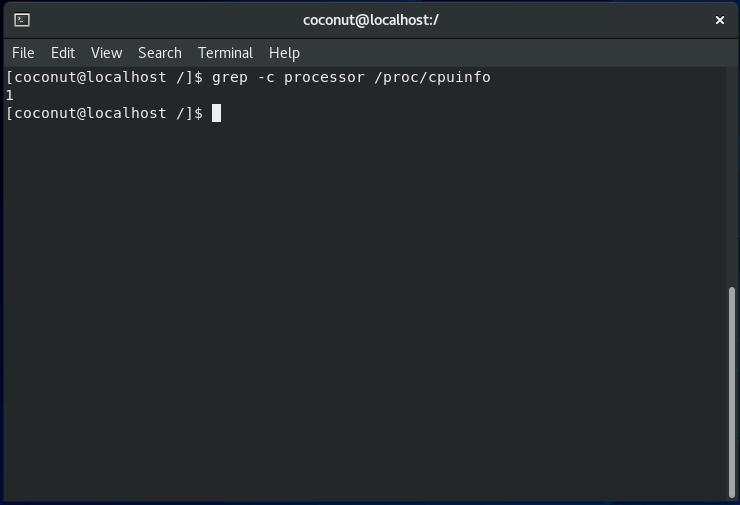 $ grep "cpu cores" /proc/cpuinfo | tail -1