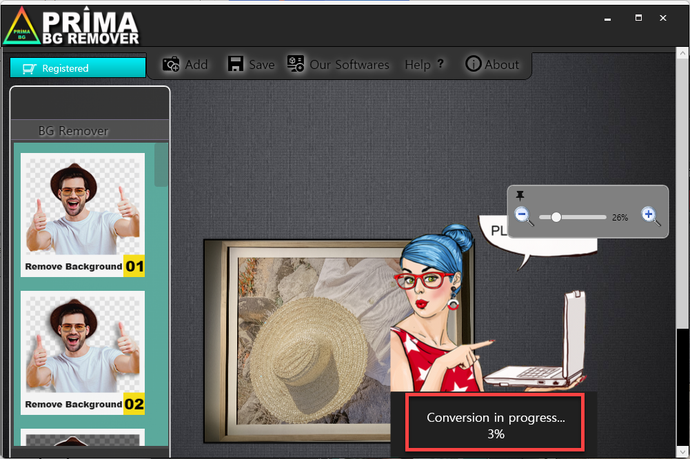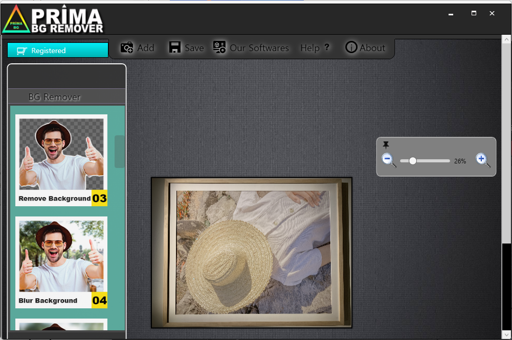 설치가 다 되셨다면 실행해 주시면 됩니다. Add를 클릭해서 배경 제거를 원하는 이미지 또는 사진을 불러와줍니다.