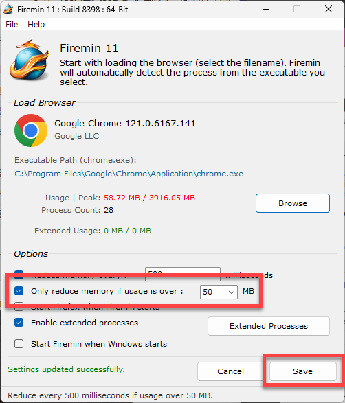 Having Firefox memory issues? Is it using over 1GB of your precious computer memory? Download Firemin and control the amount of memory Firefox uses. Firemin works with Google Chrome, Opera, Brave, Palemoon, or any other executable.