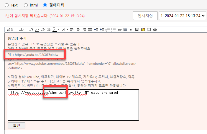 하지만 인벤에서는 shorts url 주소를 지원하고 있지 않습니다.