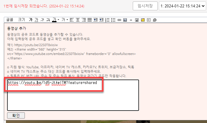 하지만 유튜브 영상을 그대로 가져오게 되면 보이지 않습니다. 유튜브 영상을 볼 수 있게끔 가져오는 방법에 대해서 알려드리겠습니다.