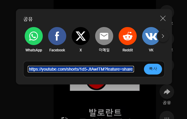 youtube.com 주소를 가져왔습니다. Shorts 영상도 가져오기가 가능합니다.