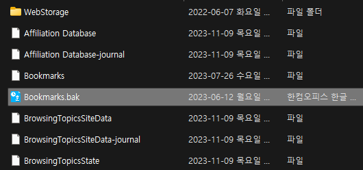 크롬 북마크 파일(.bak) 복구하기