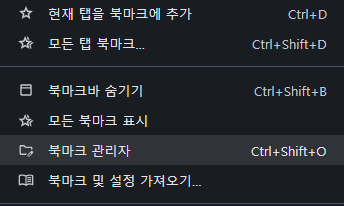 크롬 설정에서 [북마크 관리자] 메뉴로 들어갑니다.
