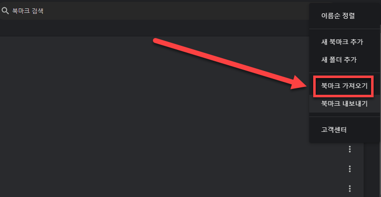 북마크 가져오기를 해서 아까 만들어 둔 html 파일을 불러와 주시면 북마크 복구가 완료됩니다.