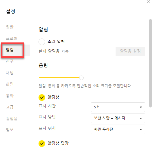 카카오톡 골뱅이 멘션 알림 끄는 방법