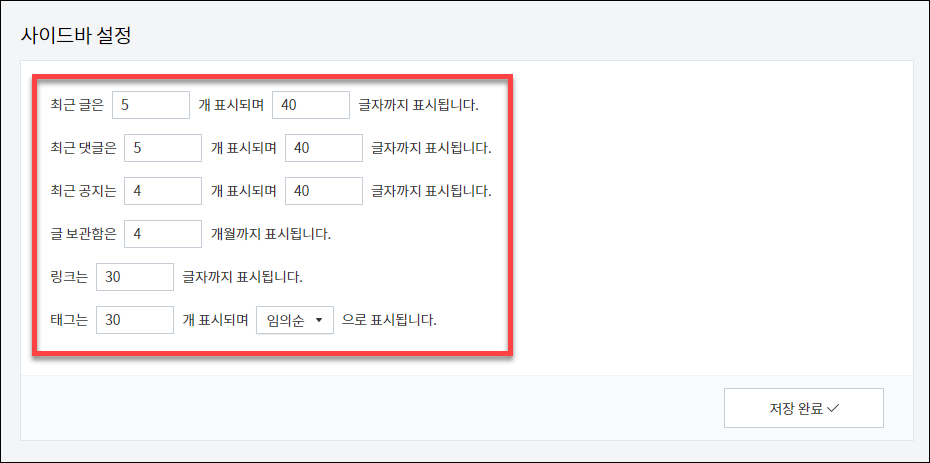 티스토리 사이드바 최신글 인기글 최근 댓글 개수 변경하기