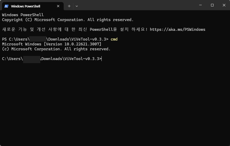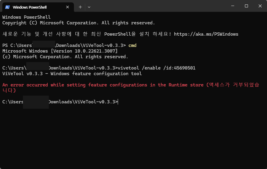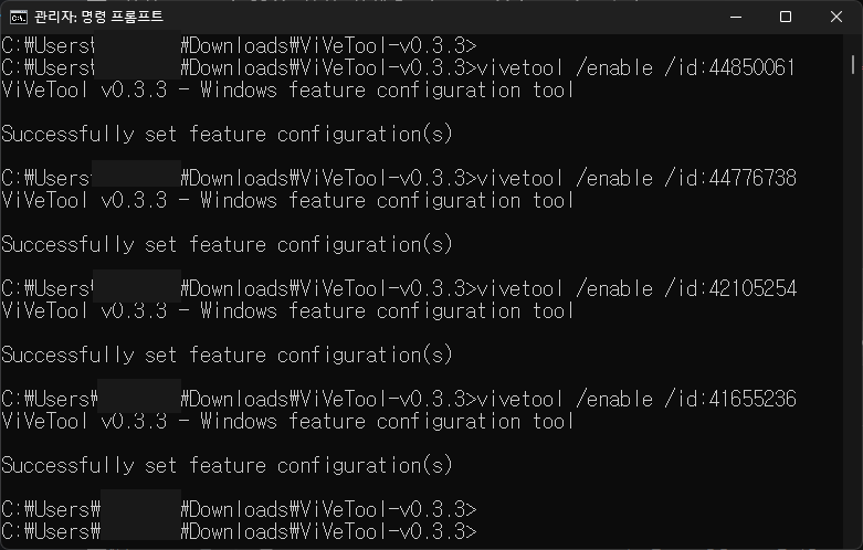 ViVeTool 이라는 것을 다운로드 해주셔야 합니다.