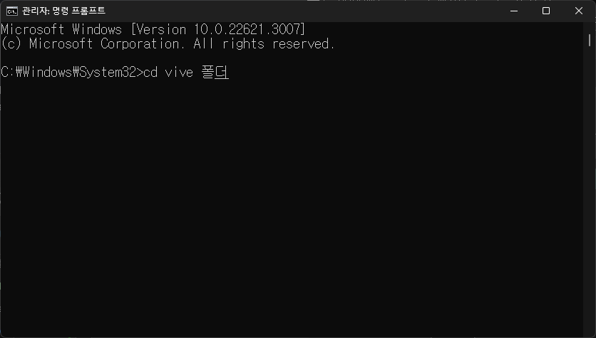 cd로 vivetool.exe 파일이 있는 폴더로 이동해 줍니다.