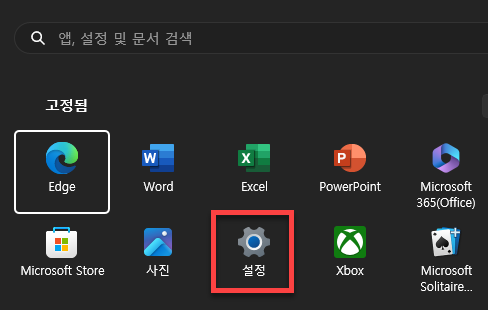 윈도우 검색 창 아래에 설정을 들어가 줍니다.