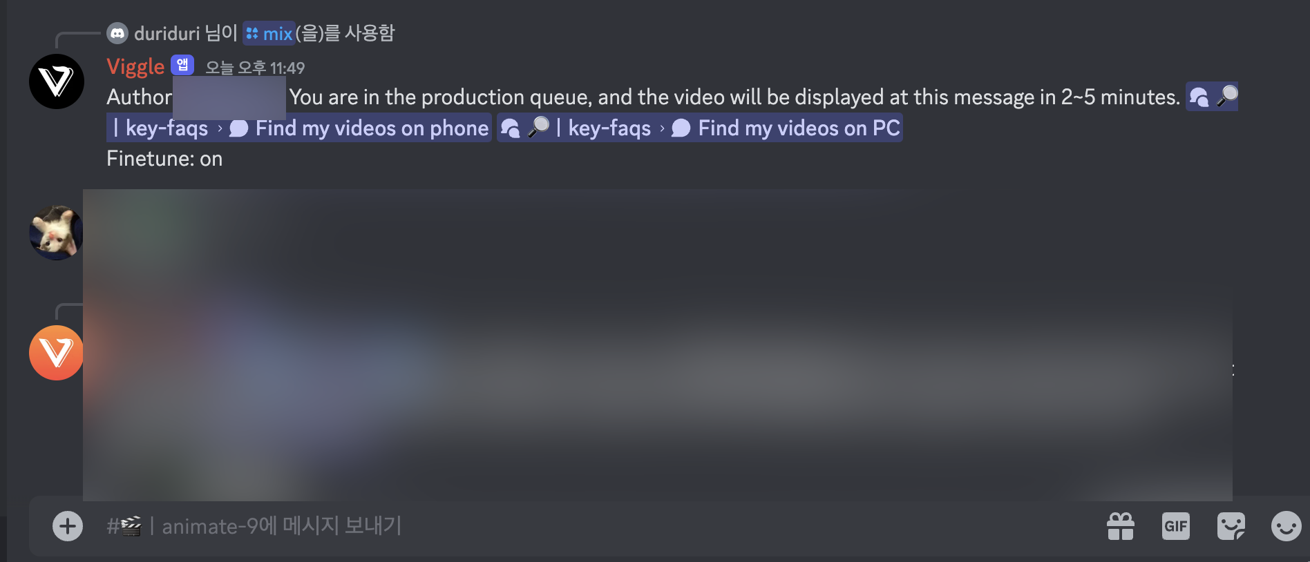 명령어를 입력하고 나면 대기열에 등록이 되었고 2-5분 정도의 시간이 걸린다고 나옵니다. 생각보다 오래걸리기 때문에 조금 기다려 주시면 영상이 만들어집니다.